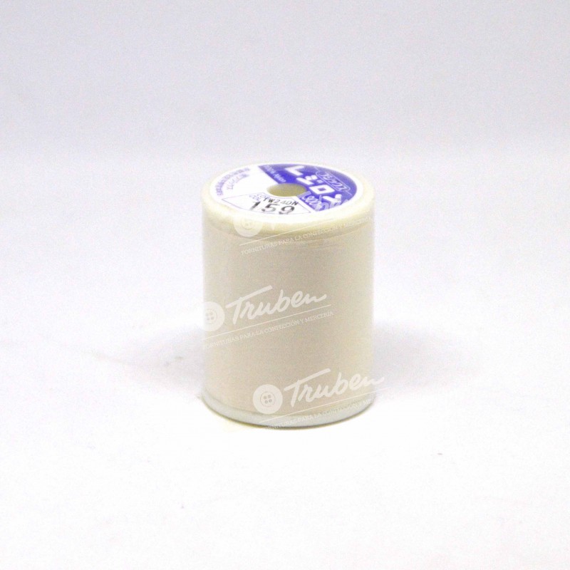Hilo de coser para tejidos de punto y elásticos. Se puede usar para coser a mano o a máquina. Su composición es 100% nylon. Es muy resistente y con un 30% de elasticidad. Es recomendable usar agujas de punta de bola de jersey o strecht. La numeración de aguja recomendada va desde la 11 hasta la 14. Bobina de 300 metros.