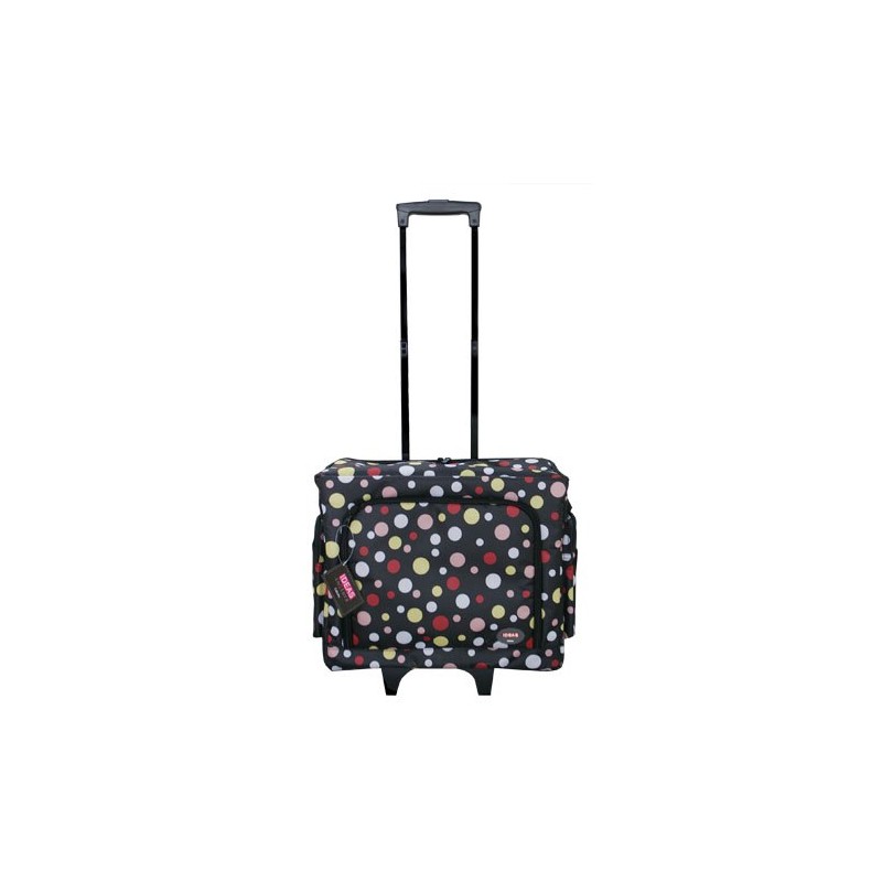 Maleta con ruedas para máquina de coser de 51×25× 37 cm con asa extensible de 54 cm. Diseñada para transportar tu máquina de coser con total seguridad y comodidad. Su estructura acolchada y sus materiales resistentes protegen el equipo durante el traslado. Dispone de ruedas duraderas y asa telescópica extensible, además de un amplio bolsillo frontal para accesorios.