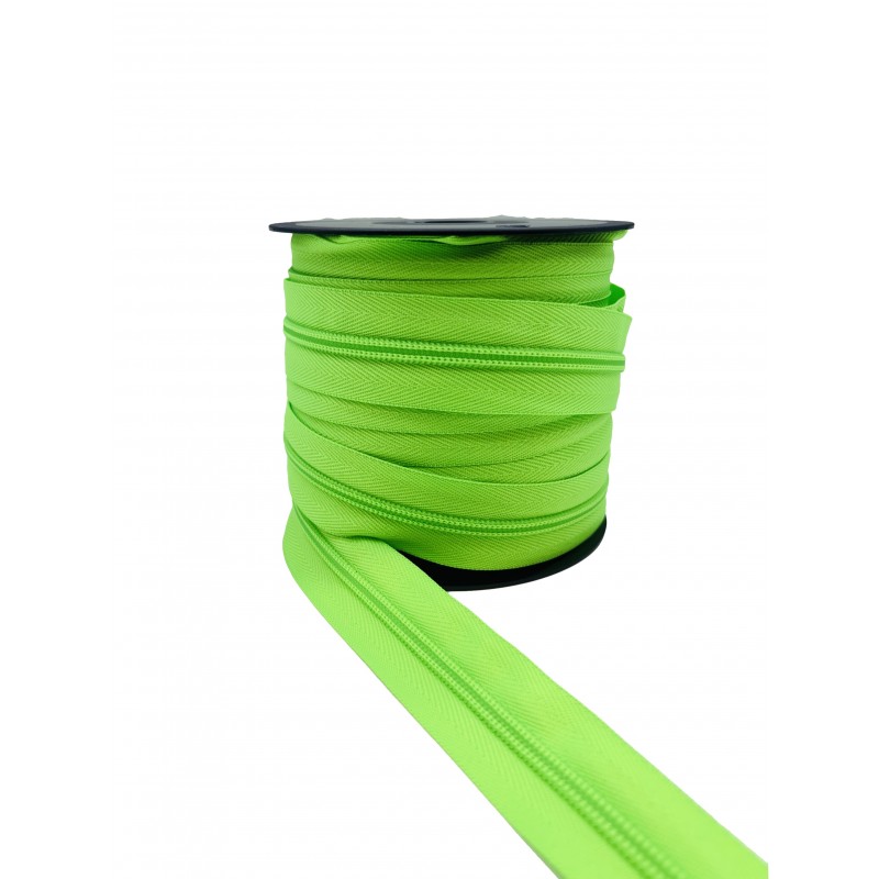 Rollo de cremallera continúa de nylon de 5 milímetros (malla 5). El rollo contiene 25 metros.